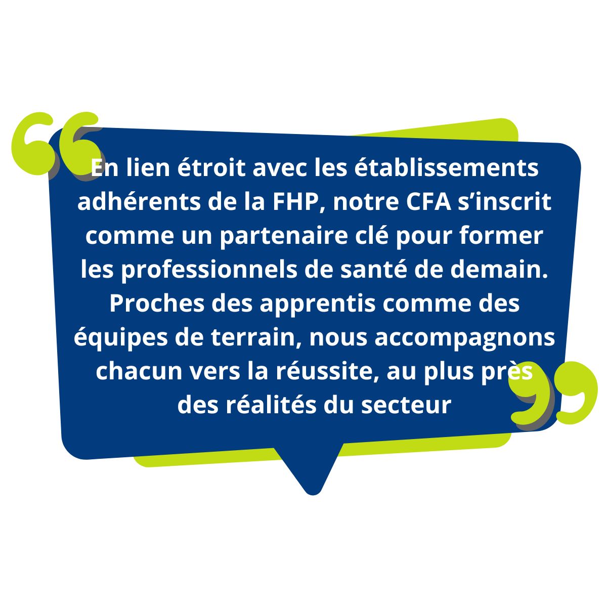 Le CFA du Groupement Professionnel de Formation de l’Hospitalisation Privée de la Région Nouvelle-Aquitaine (CFA GP FHP), créé en 2008 à l’initiative de la Fédération de l’Hospitalisation Privée Nouvelle-Aquitaine, répond aux besoins de recrutement du secteur en développant l’apprentissage en partenariat avec les employeurs et les instituts de formation de la région.