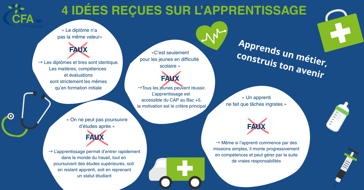 Notre CFA a la particularité d’être « Hors les murs » et de confier les enseignements pédagogiques à des Instituts de Formation partenaires, nos Unités de Formation par Apprentissage (UFA).